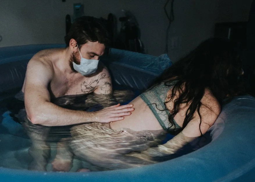 This time she had been laboring in the birth tub for a while, at some point two of her older daughters joined her and her partner, as one of them was hoping to catch her baby sister.